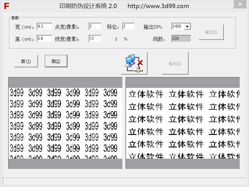 印刷防伪软件 发布于 2018-03-25 作者: hongmin guo 将特殊图案隐藏于正常的印刷品中,适用于高档印刷品的防伪,它有四个优点: 隐蔽性强,不改变原印刷品的外观,如果不使用检测片,是根本看不到隐藏的图案。 不增加印刷成本,检测片成本也很便宜。 .检测方便。只需叠上检测片,就会出现清晰图案,如公司标志、名称等。 .旋转角度可以看到不同的隐藏图案。 可多种密度混合加密,令伪造者精疲力尽